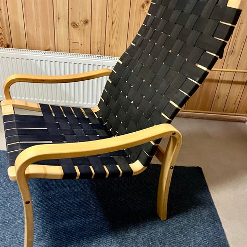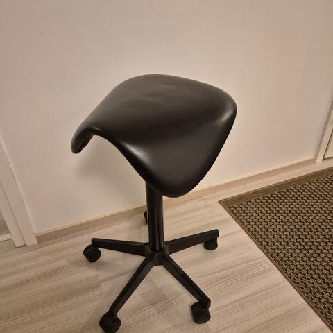 Tuoli ostettu vuosia sitten ja unohdettu kaappiin, koska töistä saatu hyvä työtuoli tuli käyttöön.