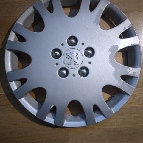 Kuvan Seatin alkuperäinen pölykapseli. Ehjä ja hyväkuntoinen lukuun ottamata pientä käytössä tullutta naarmuuntumista ja pientä maalipinnan kuoriutumista (katso viimeinen kuva). Halkaisija n. 42 cm.