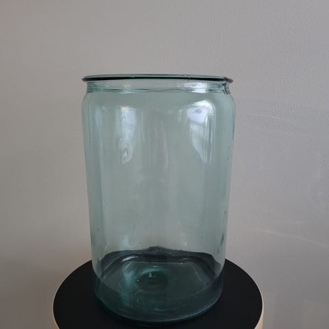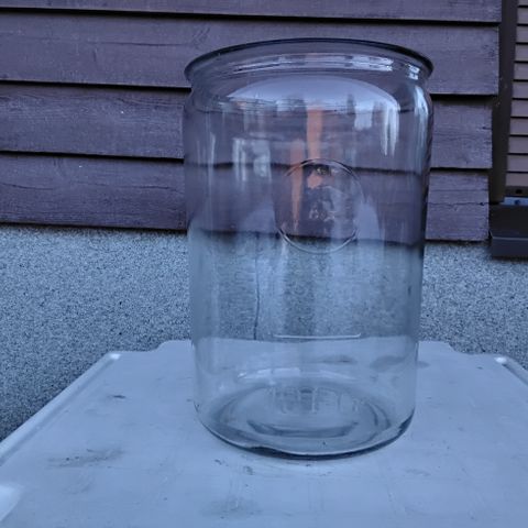 Narupurkki, puhallettua kirkasta lasia, tunnistaa purkin pohjasta, ei mitään merkintöjä, halkaisija 17 cm , korkeus 14 cm. Tilavuus 2,5 litraa.