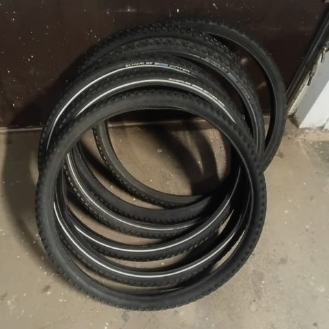 Talvivarusteet: 26" nastarenkaat valmiiksi vanteilla. Suorat vanteet, etummaisessa napadynamo, takavanteessa 8 lehtinen pakka, halogeenivalo