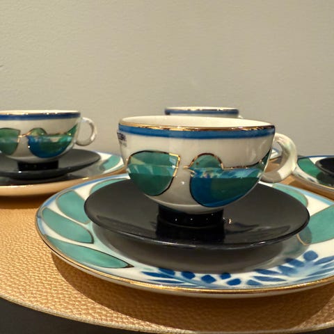 Siistit, hohtavat vihreän siniset Zeebra astiat.