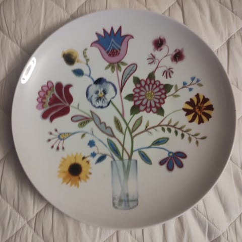 Röstrandin iso hieno signeerattu, käsin maalattu tarjoilulautanen.