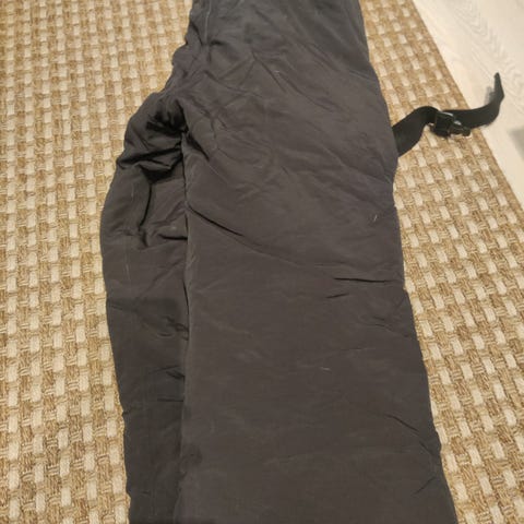 Malli Sinisalo, koko 50, vetoketjutaskut, lisäsuojat polvet ja lantio, lahkeessa kiristys. Henkselimalli.