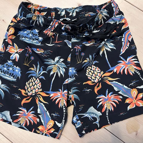 Lindex uimashortsit, koko 134/140. Siniset liukuvärjätyt. Kiristysnauhat vyötäröllä, sisällä verkkovuori.