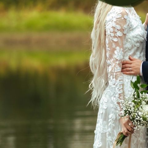 Kaunis A - linjainen häämekko, koko pituus noin 140cm , yläosa noin 24cm, rinnanympärys noin 80cm . Koko 36/38