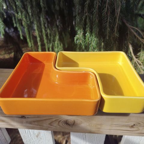 Myydään todella hyväkuntoinen keltainen tarjoiluastia.