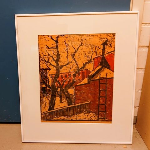 Veikko Haukkavaara "Tukinuitto" 12/20 vedos mitat kehysten päältä korkeus n.43,5cm leveys n.49,5cm kuva-ala korkeus n.24cm leveys n.31cm