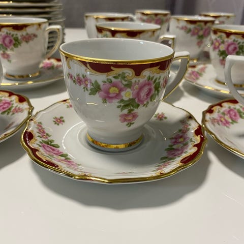 Lasten vanha kahvikalusto,ei käytetty,lisäksi muutama kuppi ja tassi jos haluaa