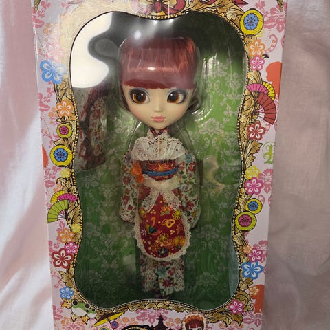 Boxi on ainoastaan avattu alhaalta ja poistettu otsaa ja hiuksia peittävä muovipanta! Nukke on kiinni boxissa ja samoin kaikki pikkutavarat, esim. 2 paria lisäkäsiä!