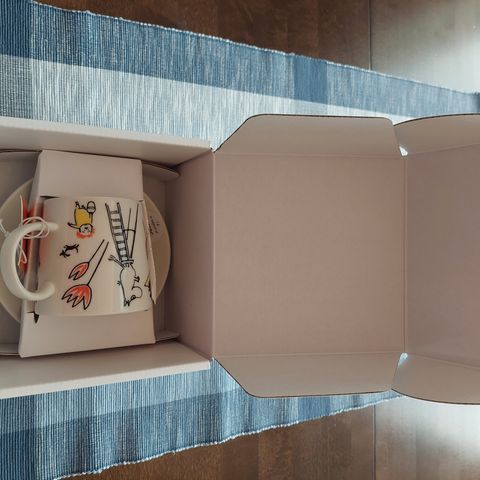 Uusi ja myyntipakkauksessa. ABC-muumimuki ja lautanen.