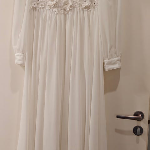 Ei ole pesetetty juhlien jälkeen, mutta ei ole erityisemmin likaantunut muualta kuin laahuksesta hieman.