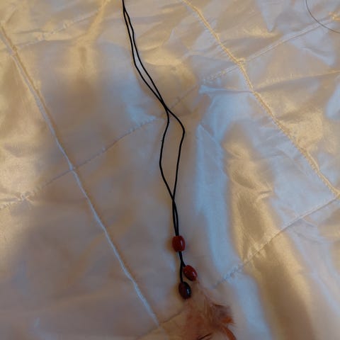 Myydään musta höyhen kaulakoru. Korun kokonaispituus n. 56cm, mutta pituus säädettävissä. Yksi höyhen ottanut osumaan. Omalla kaulalla tämä ei kuitenkaan erotu. Ollut muutaman kerran käytössä. Hinta 4 euroa. Nouto tai postitus. Ei ole toriDiiliä käytössä.