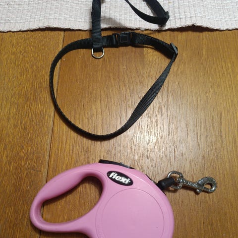 Pieni Flex talutin 3,1 m ja pieni kaulapanta, jääneet käyttämättä. Ei enään tarvetta.