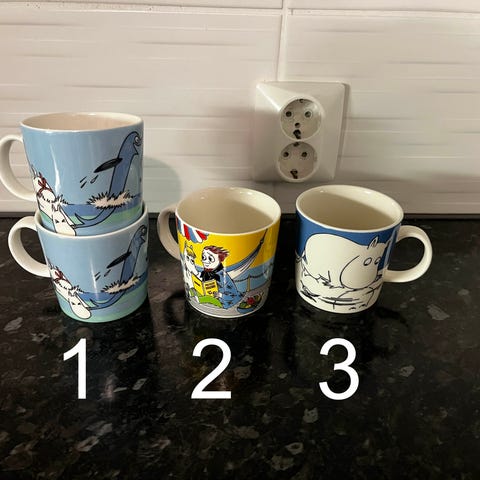 Myydään Arabian muumimukeja. Mukit ovat olleet satunnaisessa käytössä ja ovat tarrattomia, mutta erittäin siistikuntoisia. Voin lähettää mukeista lisäkuvia pyydettäessä.