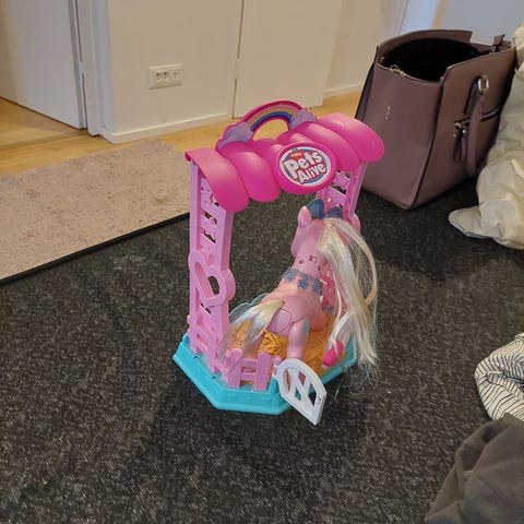 Kuvan siistit ja ehjät ponit ja ponitalli/kuljetuskassi jne.