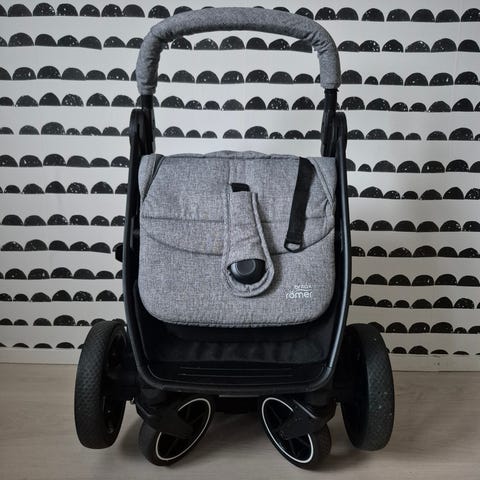 Mukaan vaunukoppa, sadesuoja, hyttyssuoja ja Skip-hopin aisaan kiinnitettävä säilytyspussukka.