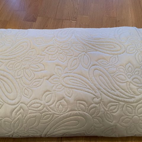 Hemtexin käyttämättä jäänyt parivuoteen päiväpeitto. 260 x 260. Ehjä. Pesty äskettäin. Violetti. Kuva ei välttämättä anna oikeaa väriä. Tekokuitua. Kiiltävä kangas. Liukas pintainen. Vanha malli, ei myynnissä liikkeessä. Kuvio toistuu 20cm välein, rypytetty kuvio. Kaunis peite. Kokoonsa nähden kevyt. Lila väri muuntuu valoisuuden mukaan. Nouto tai lähetys.