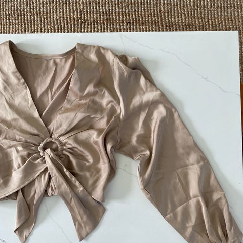 Upea kullanhohtoinen paita töihin tai iltaan, joustava ja super mukava päällä. Harmillisisesti itselle pieni. Todella laadukas materiaali. Voin lähettää.