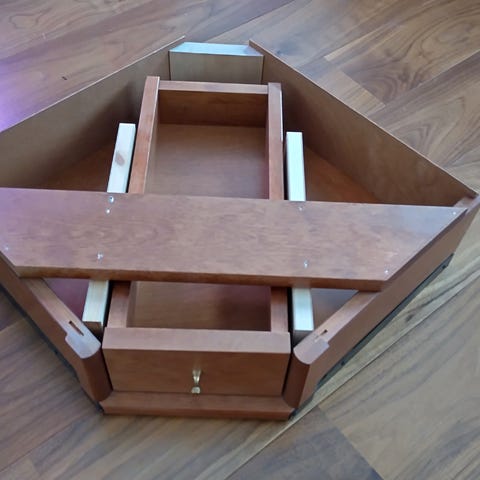 Korkeus 12 cm, leveys 86,5 cm, syvyys leveimmästä kohdasta 29,5 cm.