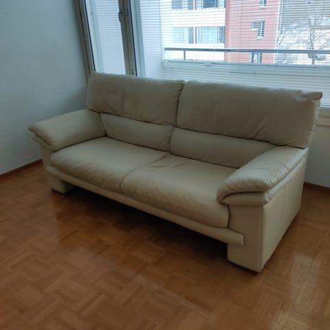 Upea vepsäläiseltä ostettu italsofa myyntiin muuton vuoksi. Tukevat metallijalat sekä pitkäjalkaiselle mukava selkätyyny. Laadukas italialainen muotoilu takaa istuinmukavuuden vailla vertaa. Sohvaa hoidettu 2×vuodessa erityisesti valkoisen nahkaan erikoistuneilla hoitoaineilla, joista viimeisin nahkaan jätettävä suoja-aine takaa sen että nahka hylkii likaa, Ja näin ollen pysyy puhtaana. Sohvat 2kpl hinta yhteensä 1000€ 500€/kpl myydään mieluummin yhdessä