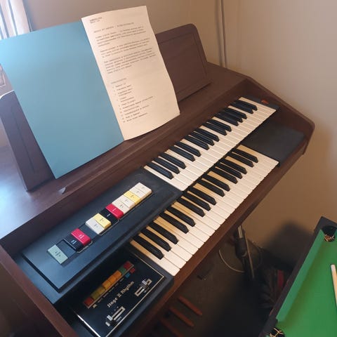 Hammond-tyyppiset sähköurut bassotusjalkiolla. Made in Japan. Koesoitto onnistuu. Tehonsäätö polkimella. Kuljetus sovitusti edullisesti. Härmälä.