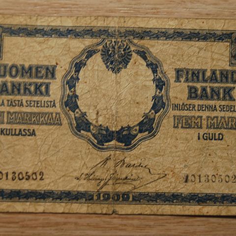 Myydään Viron 5 kruunun seteli.