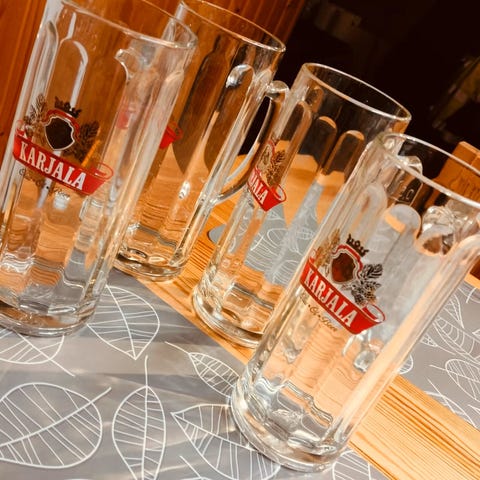 10 kpl KARJALA olut tuoppeja, vetoisuus 0,5 l uudet.