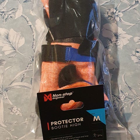 Hurtta merkkiset laadukkaat outback boots koiran kengät. Näitä tossuja on yhteensä kaksi. Tarkoituksella on vain yksi pari, että näitä voi tarvittaessa ostaa koiralle etu - ja takatassuihin eri kokoiset tossut. Yleensä etutassuihin ja takatassuihin tarvitsee ostaa eri kokoiset kengät. Kenkien koko on M. Sopii valmistajan mukaan mm. Espanjan vesikoira ja cockerspanieli. Ostettu mäyräkoiralle, mutta ei ehditty edes sovittamaan näitä. Laadukkaat keskikokoisen koiran kengät mitkä on tarkoitettu vaativaan ulkoiluun. Uudenveroisessa kunnossa. Tukeva kumipohja mikä estää hyvin sepelin pistelyn tassuun. Kengän pohja kuitenkin taipuu. Päällä on shoftshell kangasta. Hyvät heijastimet tassujen kohdalla. Tarrakiinnitys millä saa myös varren kireyttä säädettyä mieleisekseen. Hyvät säänkestävät koiran kengät vaativiin olosuhteisiin. Suojaa hyvin koiran tassua retkeillessä, vaikka hiekoitetulla tiellä lenkkeillessä tai suolalta. Hyvät retkeilykengät syksyksi karvakaverille.