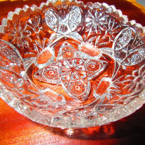 Riihimäen lasitehtaan Onerva -kulho 1920-luvulta. Halkaisija n.20cm, korkeus n.9 cm.
