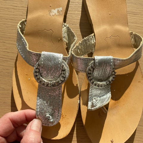 Sara Navarro-merkkiset hopeanväriset juhlasandaalit. Koko 39. Kenkälaatikko+pussukka mukana. Pari kertaa ollut käytössä, vähän jo käytönjälkeä, mutta kuitenkin siistissä kunnossa.