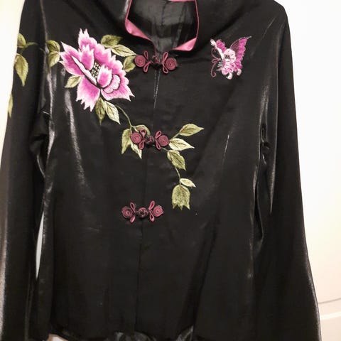 Myydään jakku, väri yksi värinen violetti, kankaan kuosi kuvioitu, kaunis, taittaa valoa. Materiaali 100% polyesteri. Valmistaja Pia Crista, Suomi, laadukas. Koko S. Edessä metallinen vetroketju, ehjä. Ympärysmitta hartioilla n 90cm, jakun pituus 60 cm, hihan pituus 60cm. Edessä taskut molemmilla puolilla. Vetoketju ei ala ihan ylhäältä vaan ylös jää 8 cm. Kestää käyttöä, pidä ja pese ja taas kuin uusi.