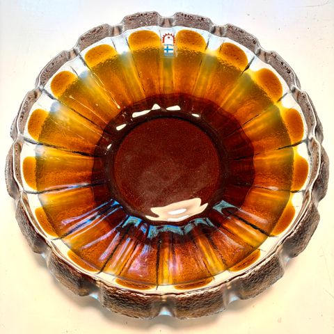 Suoraan lasivitriinistä myyntiin virheetön Tauno Wirkkalan signeeraama revontulet tarjoilukulho.Mitat halk.33.5cm ja kork.6.0cm.Kulkeutuu mukanani välillä Säkylä-Huittinen-Sastamala-Nokia-Kangasala.