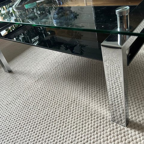 Sohvapöytä, Apupöytä, tukeva, erinomaisessa kunnossa, kromi, lasi.