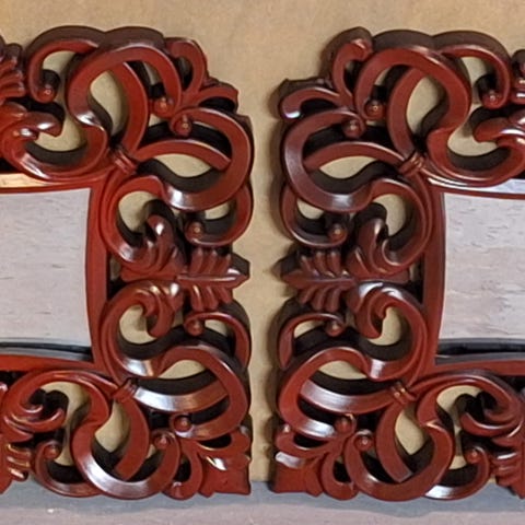 Hyväkuntoinen peili kehyksineen. Poistamalla peilin, sopii myös valokuvakehykseksi. Kuva myös taustapuolesta. Kehyksen koko 31x25,5 cm.