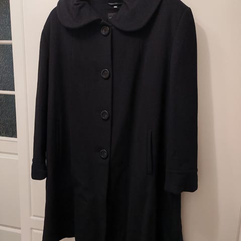 Käytetty takki, pienoista nyppyä voi löytyä, mutta ei päällepäin näy suuremmin. Yksi nappi ainakin kaipaisi pian uudet langat. Huomioitu hinnassa. En osaa sanoa, onko 100 % villaa, kun pesulappu aikoinaan leikattu pois.
