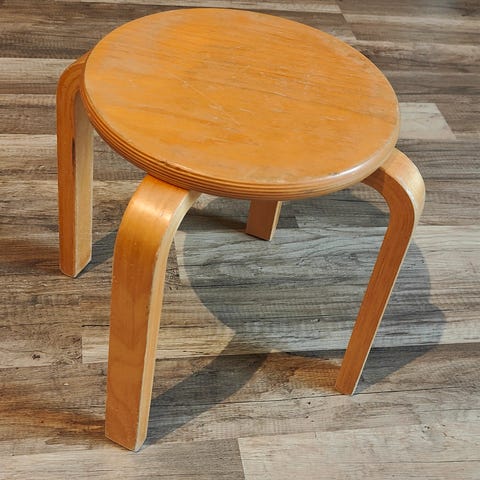 Lasten prinsessa jakkarassa kumi sujat jaloissa jolloin jakkara ei pääse liukumaan kostealla lattialla