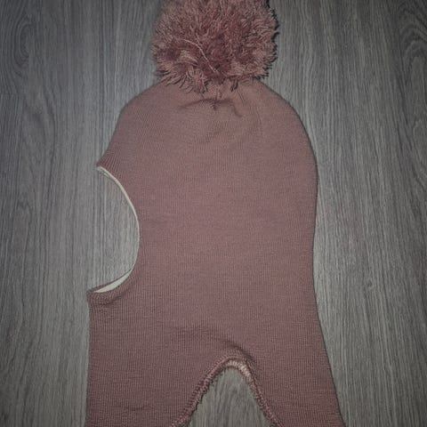 Mainion puuvillainen huppumyssy. Ei kokomerkintää, mutta on taaperokokoa ( py alle 48cm). Tummanruskea trikoovuori. Hyväkuntoinen käytetty.