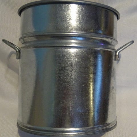 Myydään kuvan sinkkiruukku, jossa köysikahvat.