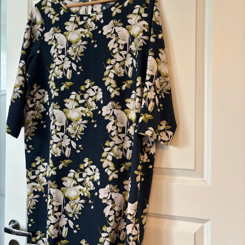 Kaunis Espritin kukkamekko. Tummansinisellä pohjalla punavalkoisia kukkia.Todella kaunis mekko. Kuminauhat hihansuissa. Pidetty max 2 kertaa. Takana vetoketju. Kokomerkintä 36, mitat k-k 48, vyötärö 82, o-h 115cm.
