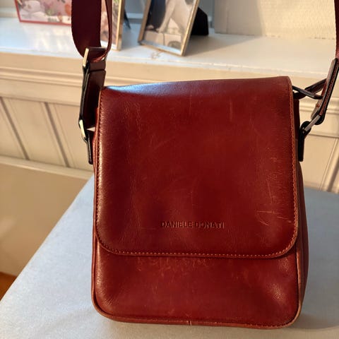 Uusi italian AITO! laukku Daniele Donati. Syvänpunainen. Kolmiosainen. Vetoketjulla. Etupuolella logo Daniele Donati. Ulkopuolella vetoketjulla suljettava tasku. Sisällä kaksi avointa taskua ja yksi tasku vetoketjulla.