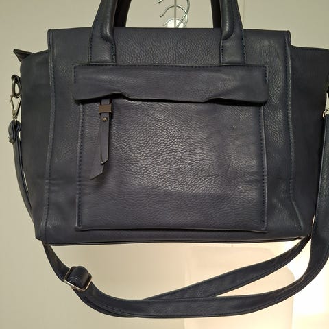 Keinonahkaa. Koko: leveys 32cm ja korkeus 22,5 cm + sangat 13 cm. Ei sisällä olkahihnaa.