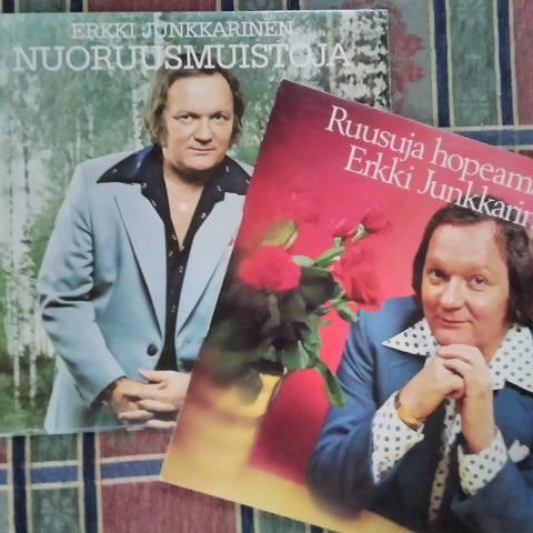 Junkkarisen Erkin Ruusuja hopeamaljassa vinyyli.