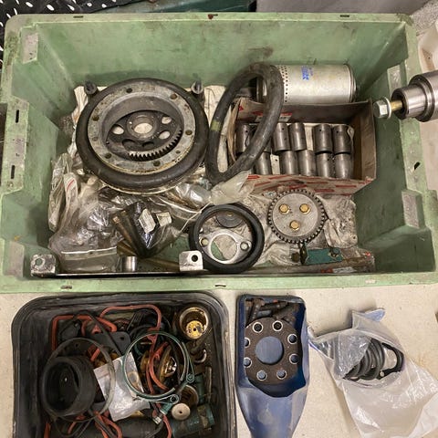 Volvo Penta keskimoottorien osittain purettuja runkoja varaosiksi