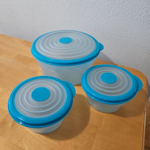 Tupperware säilytysrasiat, pakkaukseen kuuluu kolme samankokoista rasiaa. yhteensä koko 675 ml.