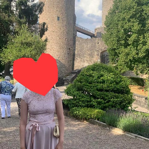 Kaunis, muhkea helma. Iho näkyy läpi vyötäröltä ja hihoista.