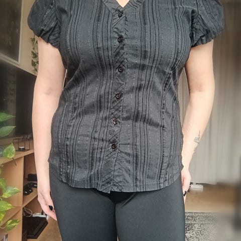 Kuvanmukainen musta Blue -merkkinen gootti/rock henkinen naisten paita.