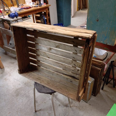 Vanha perunalaatikko. Löytyy useita.