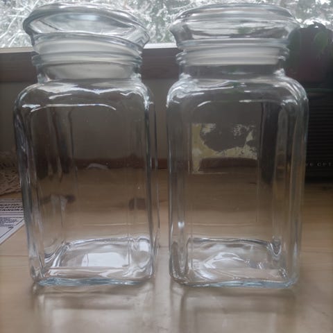 Riihimäen lasi kantti purkit. Korkeus n. 16 cm kannen kanssa.