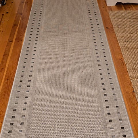 Myytävänä käyttämätön käytävän vaalea polypropeeni matto.