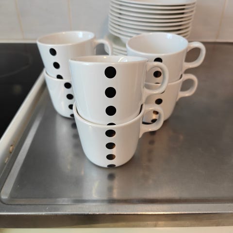 Ikean mukit, Ikean leipälautanen, muovimuki, sahanteräveitsi, jälkiruokakippo, , teepussialusta, puinen sirotin, iso sahanteräveitsi, nuolija. Nouto / kulkeutuu omien menojen mukaan lähiseudulle.